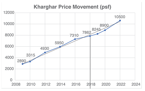 Kharghar, the Capital of Navi Mumbai, a planned mega-city offering a markedly superior lifestyle, and is not surprisingly, ranked 2nd in 'India's Most Liveable Cities' by 'Ministry of Housing & Urban Affairs' in a 2018 report. Bound by easy accessibility through highways and surrounded by picturesque hills, it is well connected through various modes of transport to all parts of the city. Various infrastructure projects predictate steady and phenomenal appreciation and growth.