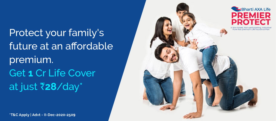 Bharti AXA Life Insurance is the name of the Company and Bharti AXA Life Premier Protect Plan is only the name the traditional non-participating life term insurance policy and it does not in any way represent or indicate the quality of the policy or its future prospects.